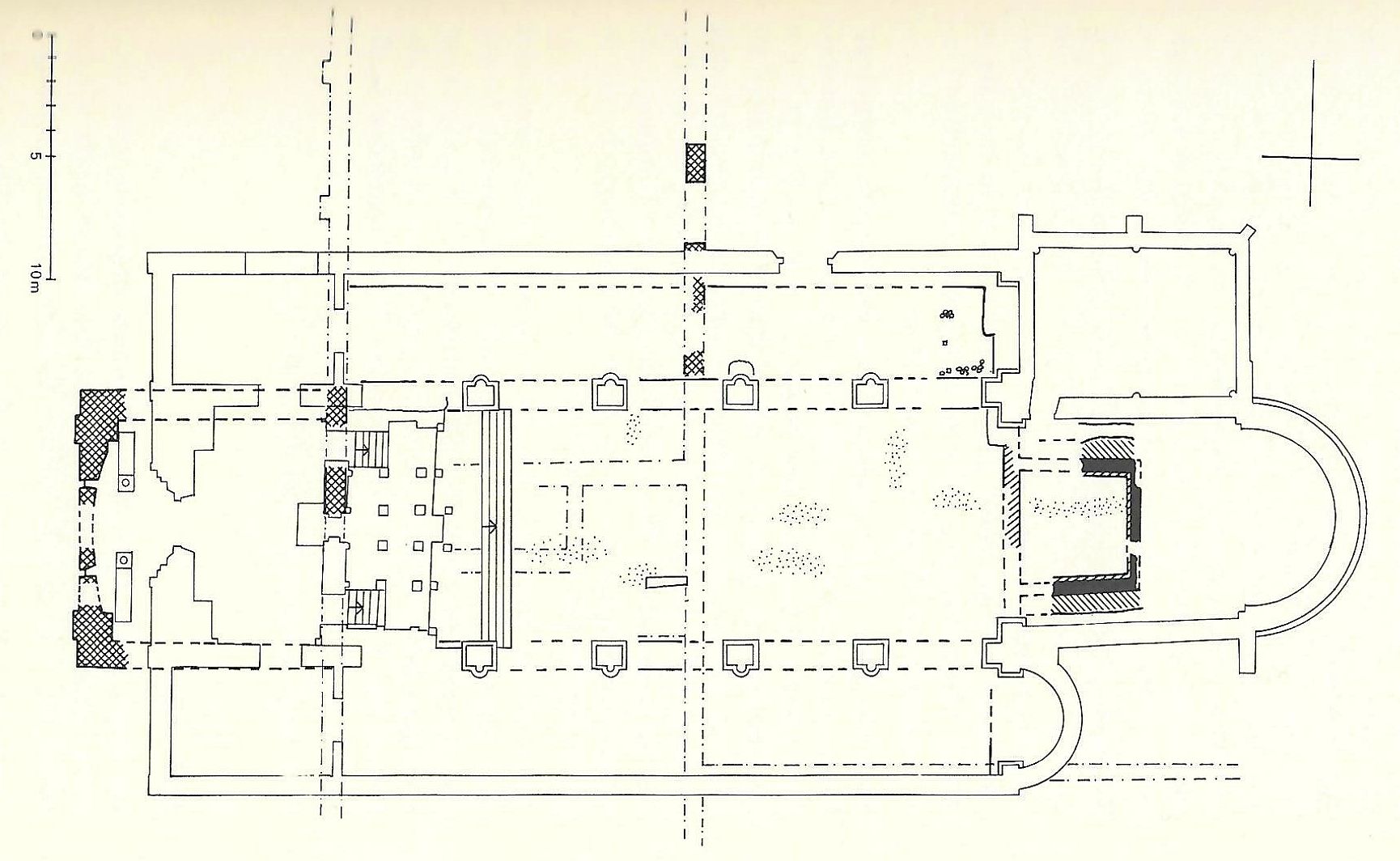 Bau akt 1100 (nach) Dreischiffig; Drei Apsiden; Westkrypta; Westchor