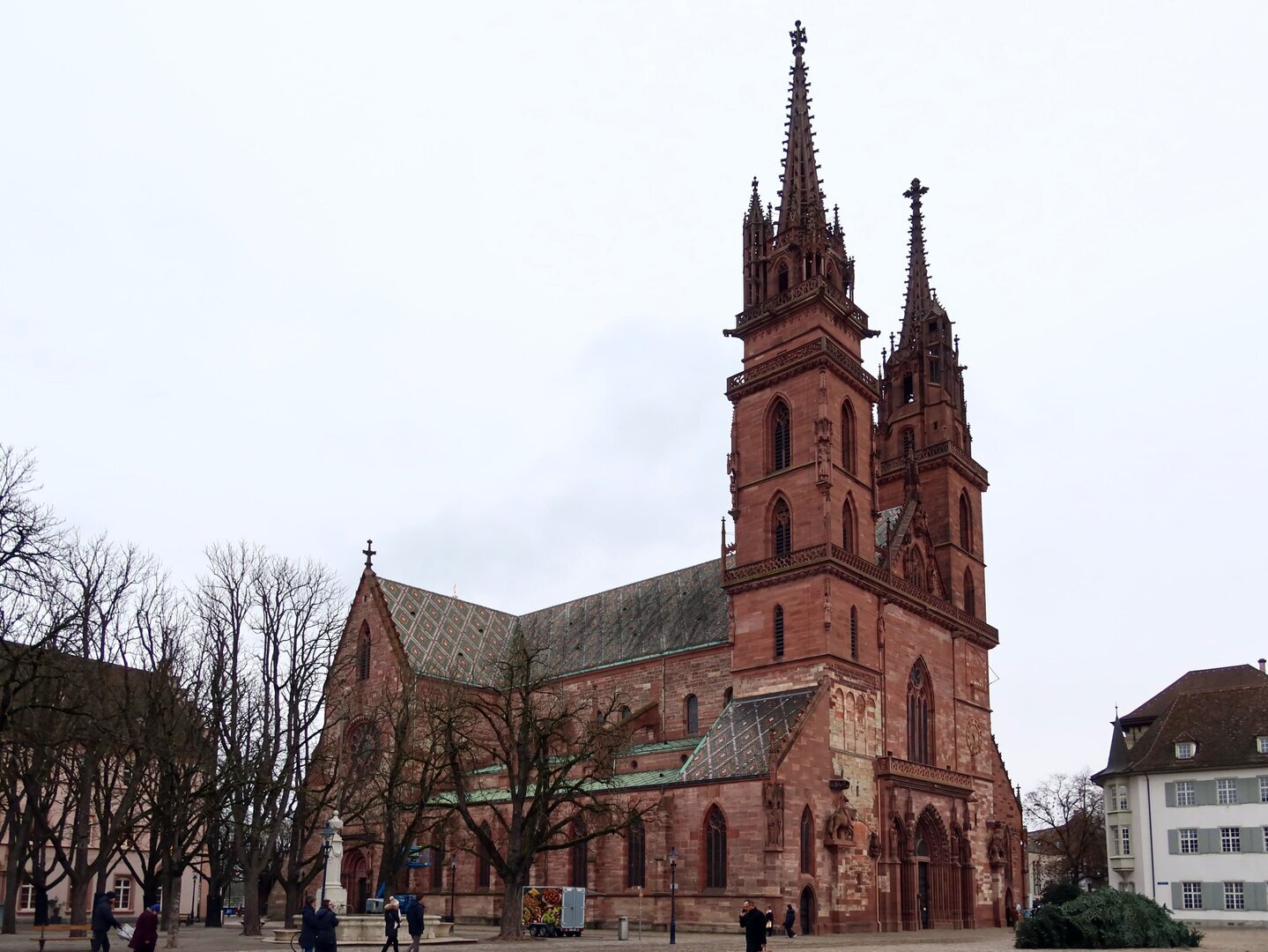 Vers 400, l'évêché, qui existait auparavant à Kaiseraugst (obj-124), a été transféré ici. À l'est, à l'extérieur de l'église actuelle, les traces d'une triple abside, peut-être une crypte extérieure, ont été fouillées. Au sud, on a également trouvé les restes d'un supposé bras transversal sud avec une abside, à partir duquel un petit bâtiment de fondation peut être reconstruit comme une église-halle avec des bras transversaux et des absides. Vers 805, sous la direction de l'évêque Haito, un proche confident de l'empereur Charles, un nouvel édifice carolingien à trois nefs a été érigé plus à l'ouest, avec un accent occidental grâce à deux tours d'angle rondes. Le bâtiment de Haito possédait une crypte et, en tant que bâtiment rectangulaire pur, une salle de choeur droite et fermée. La consécration d'un nouveau bâtiment a eu lieu en 1019. Le bâtiment actuel avec un transept est a été érigé en 1180.
