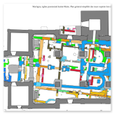 Fondé en 381 dans les vestiges romains du Forum Claudii, l'évêché de Martigny, avec sa cathédrale et son baptistère attenant (obj-800), fut transféré à Sion (obj-129) en 585. Probablement avant le transfert, un monastère dédié à Saint Martin (obj-514) fut fondé en tant que monastère cathédral et la cathédrale fut transformée en une double église. Le baptistère fut alors recouvert. La cathédrale fut construite sur des vestiges romains et consistait en une salle étroite avec une abside en fer à cheval, comparable à la cathédrale de Genève (obj-127). Au Ve siècle, la salle fut considérablement élargie. Le baptistère fut ajouté à l'église au sud, au-dessus des vestiges romains. Après le transfert du diocèse en 585 et la création d'un monastère Saint-Martin, une nouvelle église double fut construite, composée d'une large salle avec une abside enveloppée (au nord) et d'une église-halle étroite (au sud) avec un chour rectangulaire. Plus tard, après la suppression des fonctions épiscopales, mais probablement seulement vers 800, une église-halle plus grande avec une abside fut construite à la place de la double église. Cela marqua la fin de l'existence de la cathédrale. Pour la suite, voir l'histoire de la construction de l'église du monastère (obj-514).
