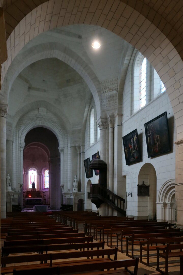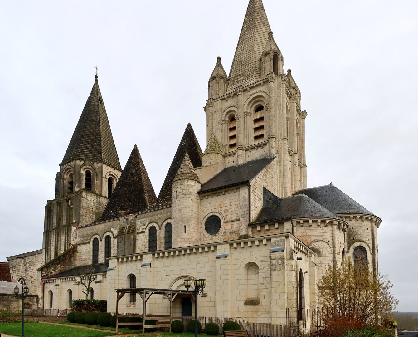 Eustache, Bischof von Tours, gründete 491 hier ein Martinskloster. Über die frühen Bauten und eventuelle karolingische Neubauten sind wir nicht informiert. Es wurden hier die Reliquien des Heiligen Gürtels verehrt. Ein Neubau von 963/985 erhielt einen Westbau, der möglicherweise bereits einen Vorgänger besaß. Das Schiff wurde 1030/1050 erneuert, dabei auch eine Krypta eingebaut, die auch einen Vorgänger gehabt haben könnte. Chor und Querhaus entstanden 1130 mit Veränderungen vom Ende des 18. Jahrhunderts und 1844. Der Westbau wurde ab 1168 erneuert.