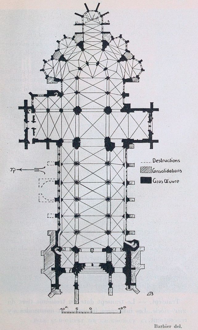 L'évêché a été fondé vers 300. Vers 440, il y eut une nouvelle construction de l'église cathédrale, probablement à l'emplacement d'un temple. L'aspect des premières constructions est inconnu. Il n'existe aucune information sur une nouvelle construction carolingienne du 8e ou 9e siècle, ce qui est fortement supposé. L'édifice a probablement été détruit en 910 lors d'attaques vikings, après quoi une rénovation a eu lieu jusqu'en 986. La construction gothique actuelle a débuté en 1210.