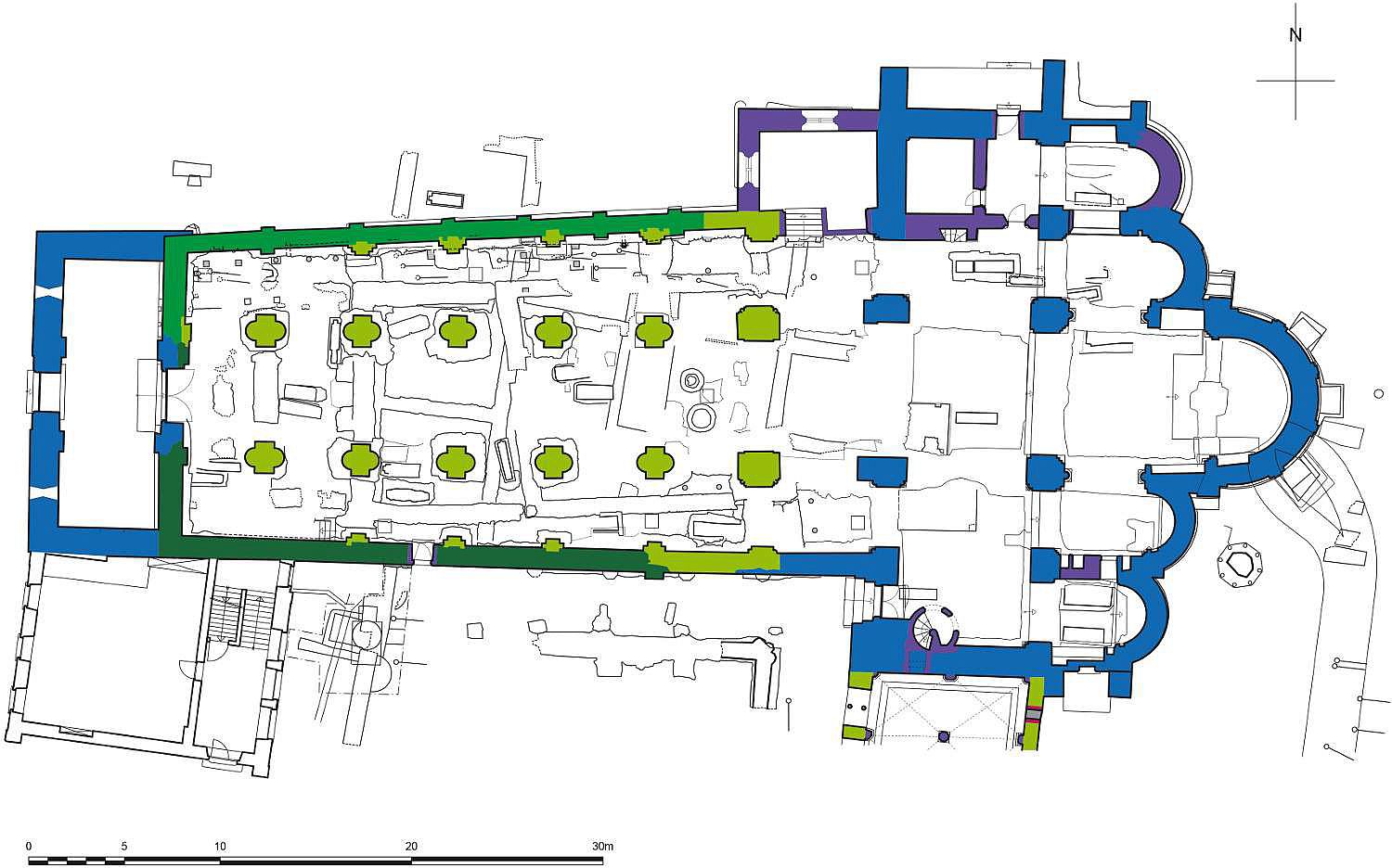 Bau II 800 (um) Dreischiffig; Ostquerhaus; Westbau