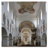 Vers 750, le duc de Bavière Tassilo III fonda ce monastère de défrichage à côté de Niederalteich (obj-18) et Metten (obj-524). Il reçut le remarquable patronage romain de Tiburtius. Bien que la précocité de la fondation et le choix du patronage aient été mis en doute, on peut toujours supposer une fondation vers 750. De nombreux vestiges romains encore utilisables étaient présents dans la région. On ne dispose toutefois d'aucune information sur la forme du bâtiment de fondation. Dans la première moitié du 10ème siècle, le monastère a été détruit lors des attaques hongroises et a disparu. Après 1157, le monastère fut réoccupé et une nouvelle construction, une basilique à trois nefs avec une tour occidentale, fut érigée. L'édifice a été baroquisé en 1736.