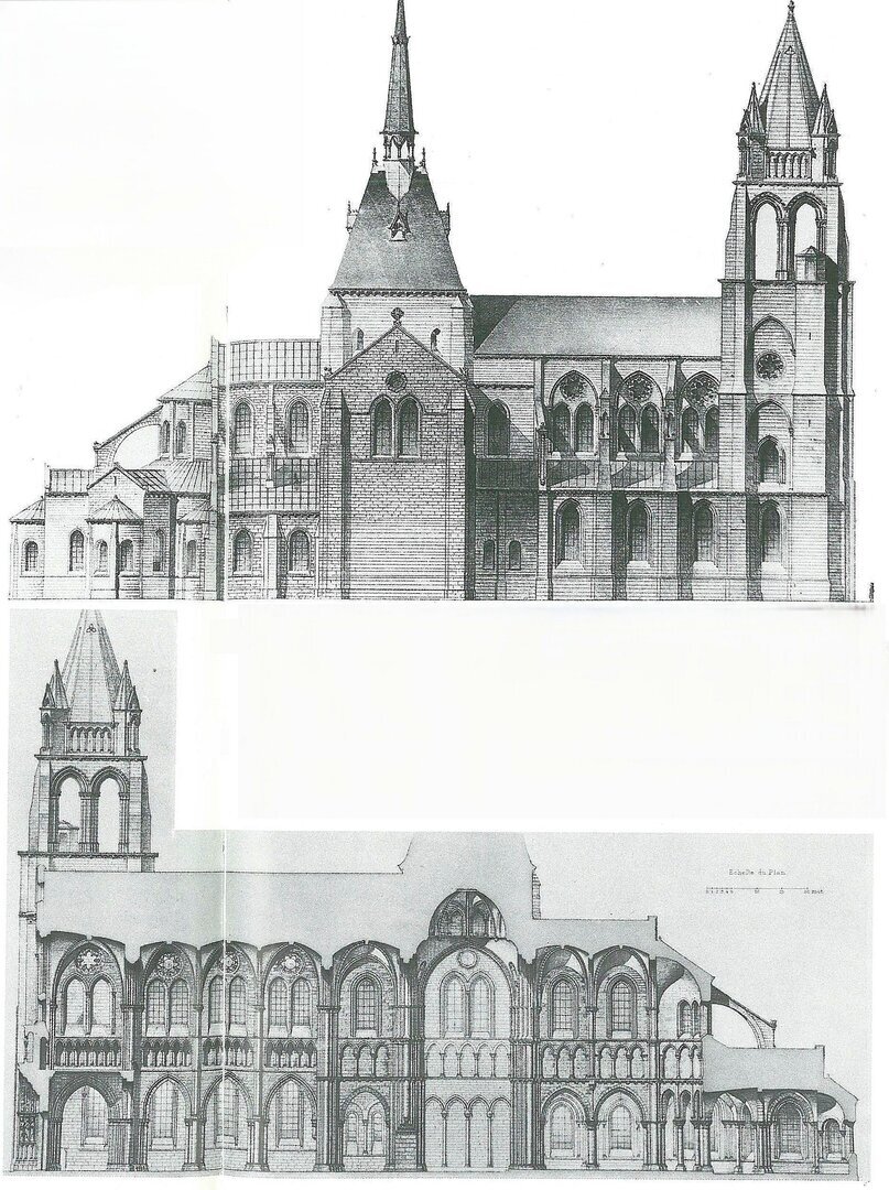 La fondation est obscure, elle aurait eu lieu vers 650/690. On ne sait donc rien non plus sur les premières constructions. En 873, des bénédictins du monastère de Corbion (Moutiers-au-Perche) (obj-424), fuyant les Normands avec les reliques de Laudomar (Laumer), arrivèrent dans le monastère probablement déjà existant. Un nouveau bâtiment fut construit jusqu'en 924, puis brûlé en 1114. Le choeur et le transept furent reconstruits entre 1138 et 1186, suivis de la nef au début du 13ème siècle. Les reconstructions ont eu lieu après des destructions à partir de 1568. Le bâtiment occidental massif et remarquable permet de spéculer sur des constructions occidentales plus anciennes.