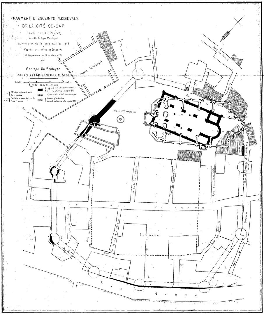 Das Bistum wurde wohl schon vor 400 gegründet. An einer wichtigen römischen Straßenverbindung gelegen entstand hier ein großes Garnisonslager, das bis zum 4. Jahrhundert zu einer florierenden Stadt wurde. Bereits für das Ende des 4. Jahrhunderts ist ein Bischof nachgewiesen, die Domkirche (obj-103) lag in der römischen Stadt an der Stelle eines ehemaligen Tempels. Zur gleichen Zeit, also vor 400, entstand südlich der Domkirche ein Baptisterium, das bis ins 16. Jahrhundert bestand und erst um 1590 abgebrochen wurde. Nachgewiesen ist ein rundes Fundament.