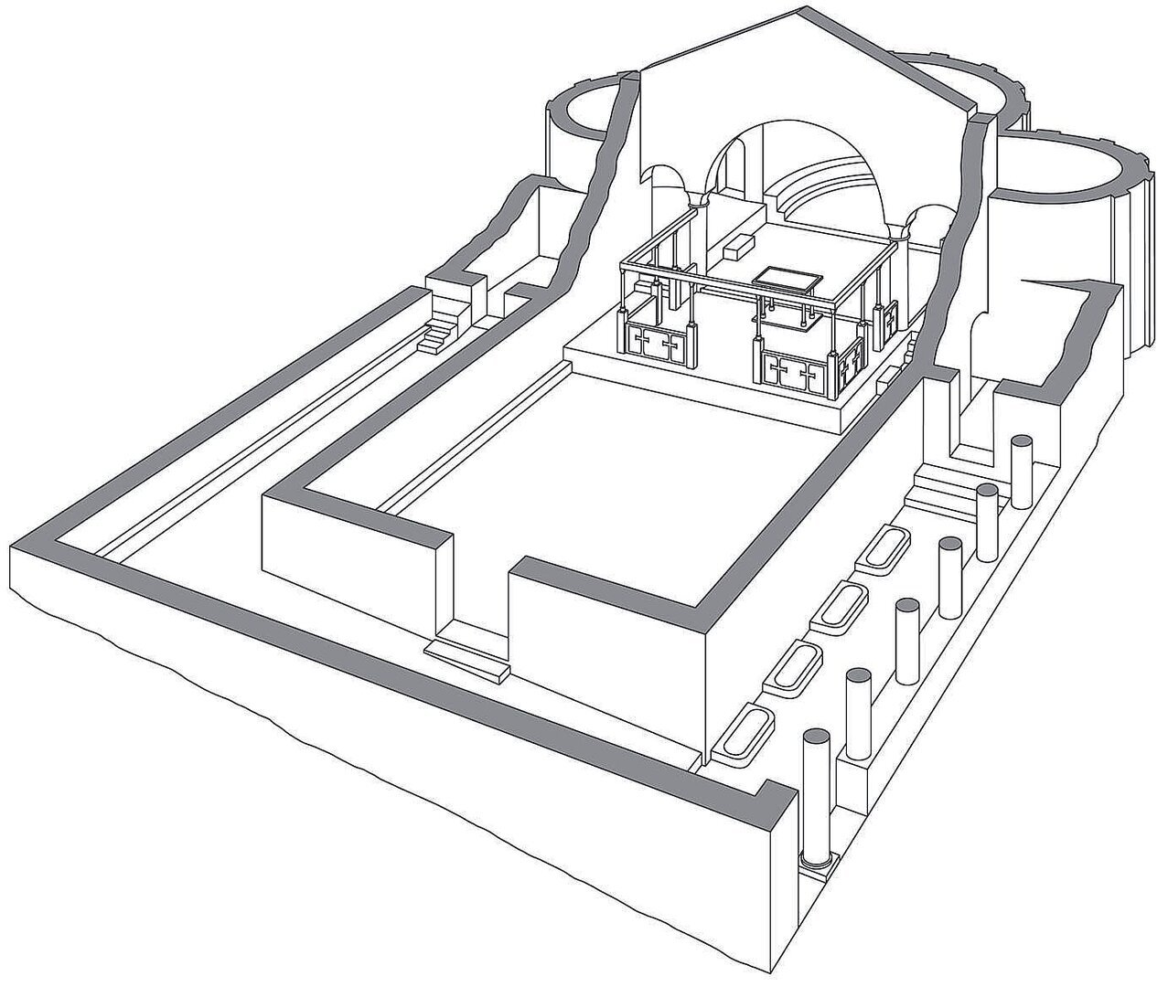 Bau II 600 (um) Saal; Apsis; Dreikonchen