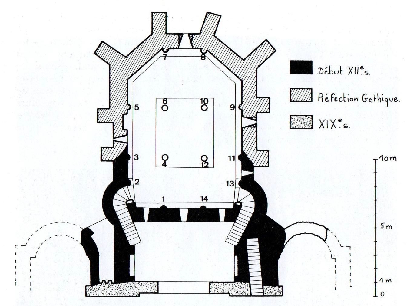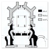 Bau akt 1200 (vor) Ostquerhauss; Drei Apsiden; Westbau; Krypta