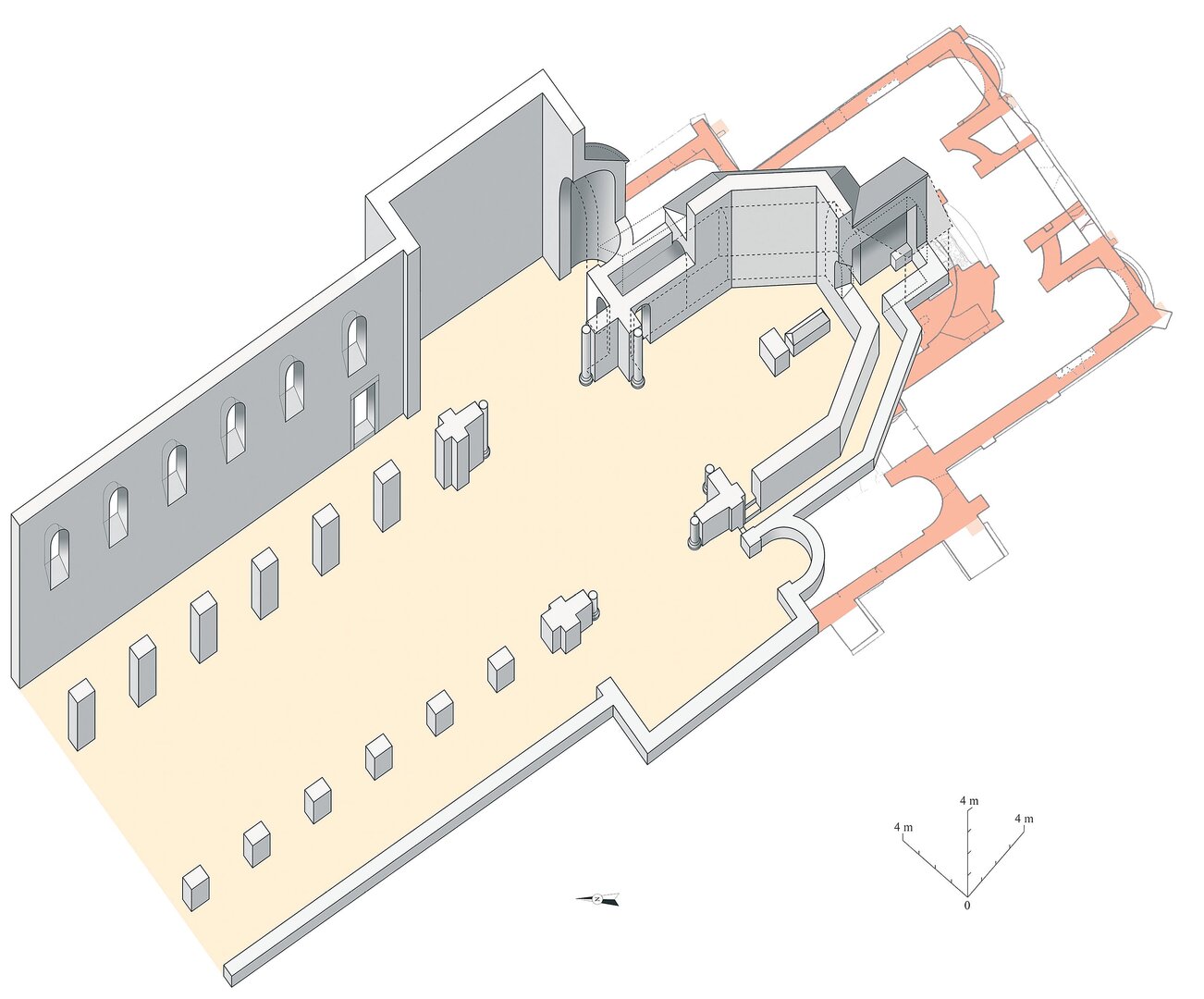 Bau I 815 Dreischiffig; Außenkrypta; Westbau (?)