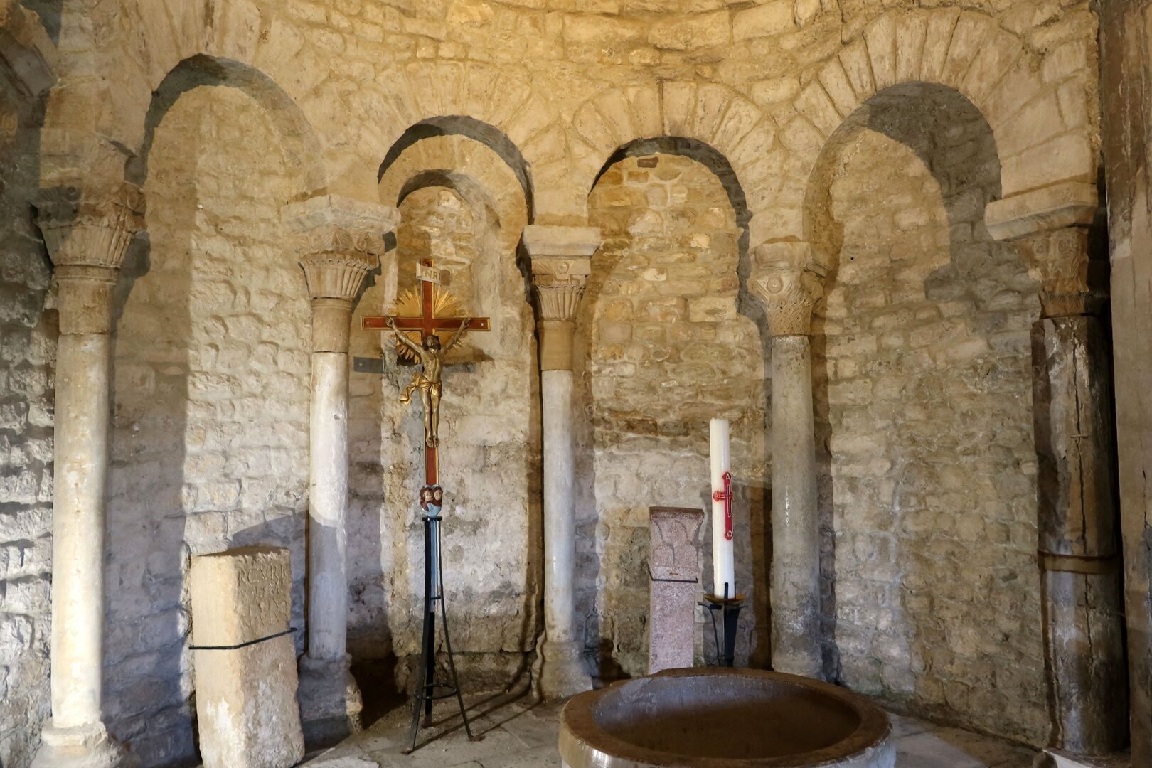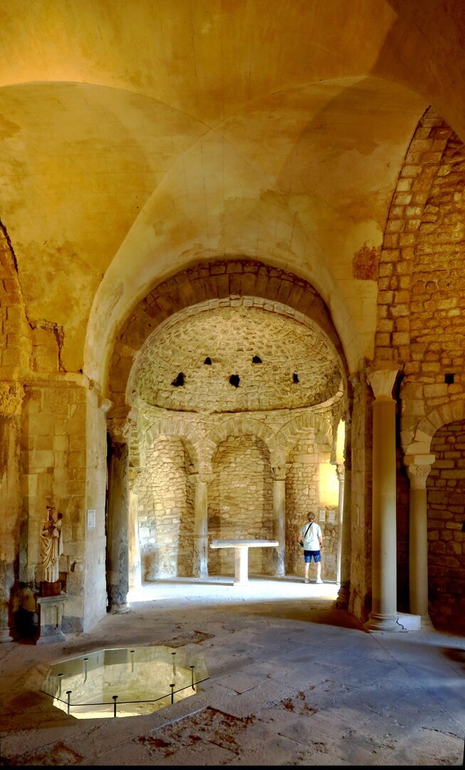 Neben dem um 520 gegründeten Dom von Venasque (obj-996) entstand wohl um 570 ein Grabbau für Bischof Sifredus von Carpentras (+570), ehemals Mönch von Lérins, dann Bischof von Carpentras und in Personalunion von Venasque. Das Bauwerk mit annähernd quadratischem Innenraum verfügt über vier ungleich große Apsiden mit Blendarkaden auf Säulen mit wiederverwendeten antiken Kapitellen. Ein Umbau der Anlage im 11. Jahrhundert wird vermutet, wohl im Zusammenhang mit der Umnutzung zur Taufkapelle und dem Einbau eines achteckigen Taufbeckens.